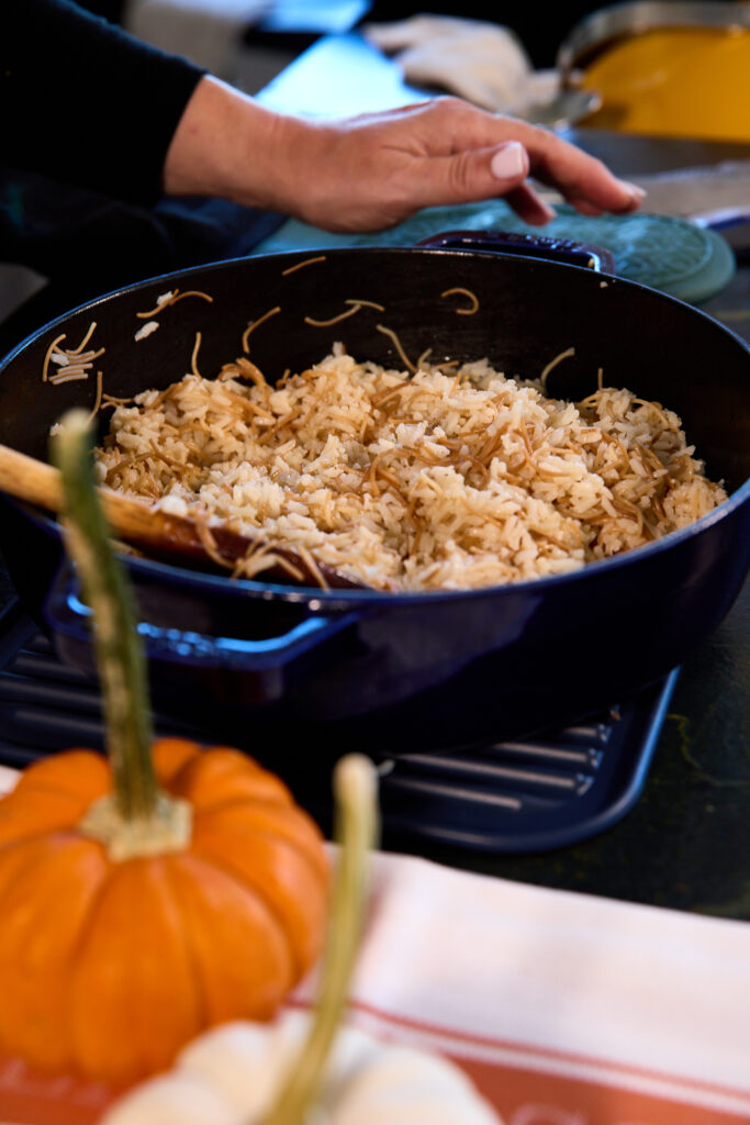 Step 1. In a heavy pan, melt butter. Add vermicelli and a pinch of salt, stirring constantly until golden brown.